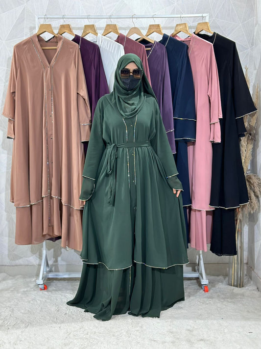Diamond Chiffon Double Layer Front Open Stone lace Sleeves Dark Green Abaya Burqa with Matching Hijab and BeltRegular price Rs. 2,249.00Regular priceUnit price / perRs. 5,900.00Sale price Rs. 2,249.00Sale