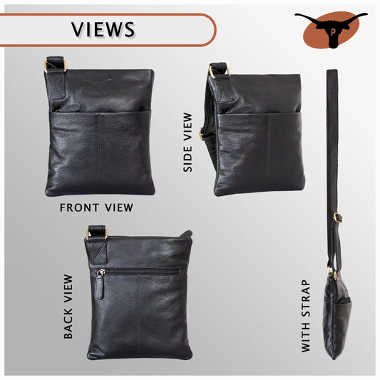 Pinato Genuine Leather Messenger Bag Jet Black for Women & Men